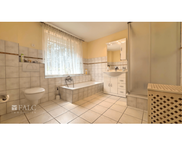 * Vollbad im Erdgeschoss mit Wanne, Dusche und großem Fenster
