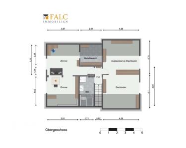 Das Obergeschoss beherbergt ein sehr großes, bereits ausgebautes und helles Zimmer, das sich durch seine Größe optimal in Wohn- und Schlafbereich unterteilen lässt. Eine große Abstellnische ergänzt diesen Bereich ideal. Zusätzlich steht im Obergeschoss ein Duschbad mit Fenster zur Verfügung. Eine Besonderheit ist die Ausbaureserve im Dachgeschoss, die Raum für zwei weitere Zimmer bietet. Ein kleiner Spitzboden sorgt für zusätzlichen Stauraum.