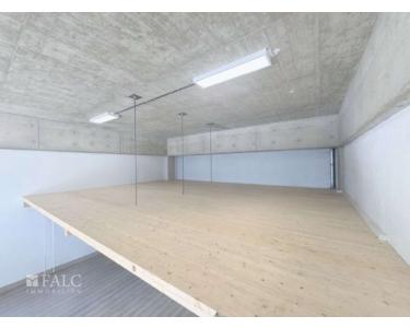 Eine Empore erweitert die Nutzfläche und bietet zusätzlichen Arbeitsraum. Im Erdgeschoss steht eine separate WC-Einheit zur Verfügung.
