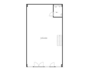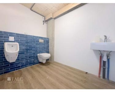 Im Erdgeschoss erwartet Sie eine großzügig und offen gestaltete Arbeitsfläche mit einer WC-Einheit.
