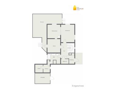Erdgeschoss: Windfang, Flur, Gäste-WC, Bad, Vorraum, Sauna, Küche mit Zugang zur Terrasse, Esszimmer, Wohnzimmer