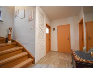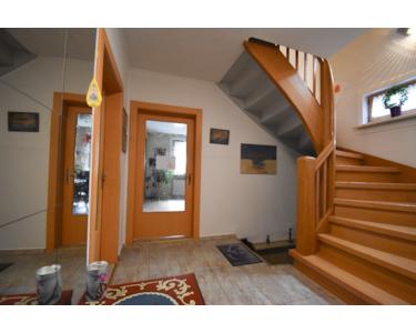 Zugang zum Dachgeschoss = massive Holztreppe mit einseitigem Handlauf
