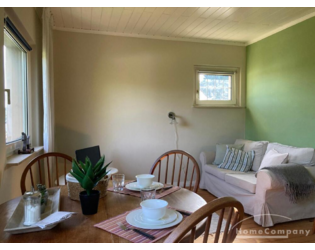 Wohnzimmer: ausgestattet mit gemütlicher Couch, Esstisch und Stühlen Schlafzimmer: hell und großzügig geschnitten, bietet ausreichend Platz und Stauraum; eingerichtet mit Doppelbett und Kleiderschrank