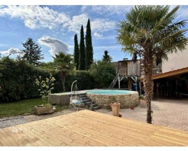 Vom Wintergarten gelangen Sie über eine große Terrasse in den herrlichen Innenhof und Garten des Hauses. Der Swimmingpool lädt zum Baden und Relaxen ein.