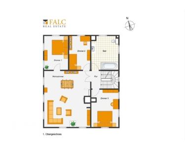 Obergeschoss: Wohnzimmer, 3 Zimmer, Bad