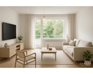 Der durchdachte Grundriss bietet Ihnen einen großen Wohnbereich mit Zugang zum Balkon, zwei gut geschnittene Schlafzimmer, eine separate Küche, sowie ein Bad und ein separates Gäste-WC.