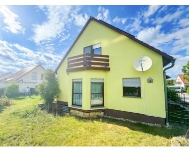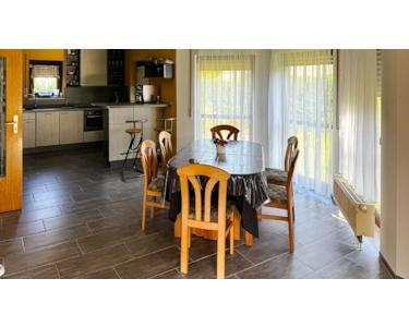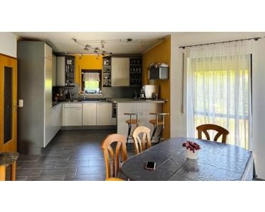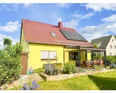 Dieses voll unterkellerte Einfamilienhaus wurde 1996 in massiver Bauweise errichtet. Es wurde über die Jahre sehr gepflegt und neben werterhaltenden Maßnahmen auch immer wieder investiert. So wurde beispielsweise ein Kaminofen und eine Sauna eingebaut. Später kamen dann noch ein Wintergarten und eine PV-Anlage mit Akkuspeicher hinzu. Die Raumaufteilung ist eher großzügig gestaltet. Im Ergeschoss betritt man durch einen Windfang den großen Flur von dem man zwei Zugänge zu der offenen Küche mit Essplatz, Wohnzimmer und Wintergarten hat. Zudem gibt es im Erdgeschoss noch ein Arbeitszimmer und ein Gäste-WC.