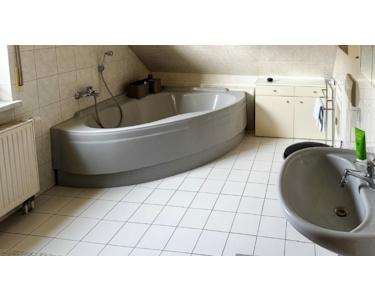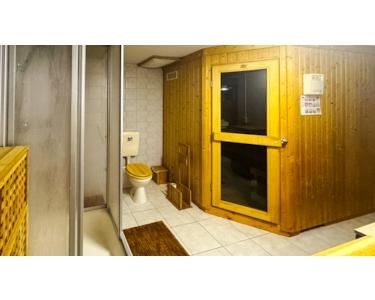 Im Obergeschoss befinden sich zwei große Räume und das Badezimmer mit Dusche und Wanne. Wer gerne ein Zimmer mehr benötigt, kann durch geschickte Grundrissänderung aus zwei Räumen drei entstehen lassen. Der Platz gibt dies definitiv her. Alternativ kann aber auch der im Keller befindliche Hobby- bzw. Sportraum als Gästezimmer oder Schlafzimmer genutzt werden. Eine eigene Dusche und ein WC befinden sich gleich nebenan in der Sauna.
