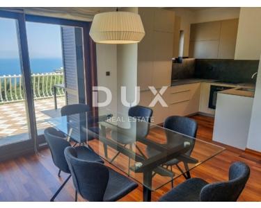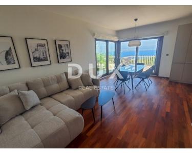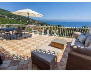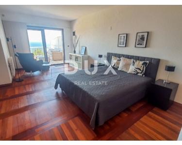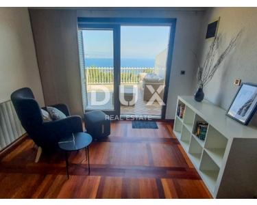 Ein besonderer Vorteil dieser Wohnung ist die große Terrasse, von der sich ein beeindruckender Blick auf die Kvarner-Bucht bietet. Schöne Schiebewände sorgen für viel Licht und die Atmosphäre eines mediterranen Lebensstils. Das nach Süden ausgerichtete Schlafzimmer bietet ebenfalls Meerblick und direkten Zugang zur Terrasse.