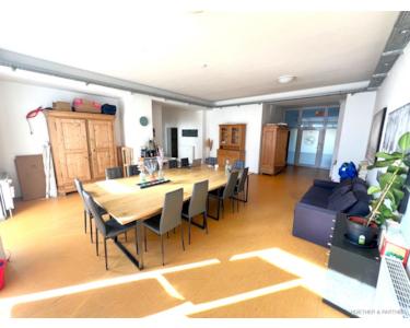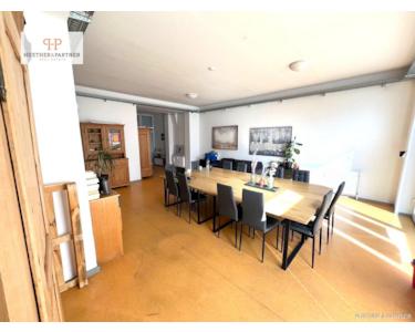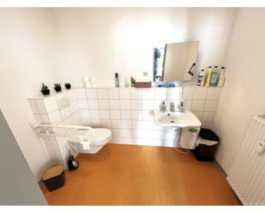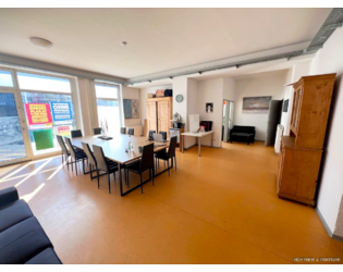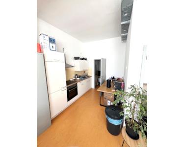 Die Bürofläche umfasst 98 qm und verfügt über einen großen Aufenthaltsraum, 2 Büroräume, eine offene Küche mit EBK, einen Abstellraum und eine Toilette. Es gibt zwei Eingänge (vorne und hinten) und ein Grundriss ist vorhanden.