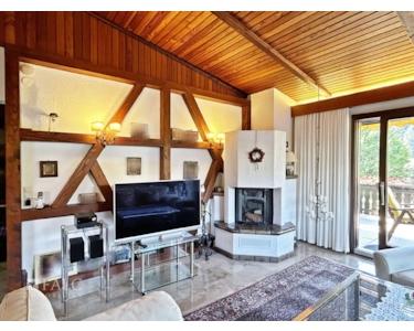 Das Erdgeschoss beherbergt ein geräumiges Wohnzimmer mit gemütlichem Kamin, das durch große Fensterfronten viel Tageslicht einlässt und einen direkten Zugang zum Balkon bietet. Der Balkon lädt dazu ein, die frische Luft und den Blick auf den gepflegten Garten zu genießen. Angrenzend befindet sich das Esszimmer, das ideal für gesellige Abende mit Familie und Freunden ist.