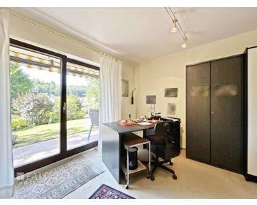 Im Untergeschoss befinden sich drei weitere Zimmer, die durch ihre Helligkeit und den Blick ins Grüne überzeugen.