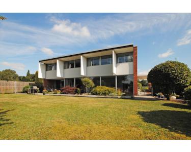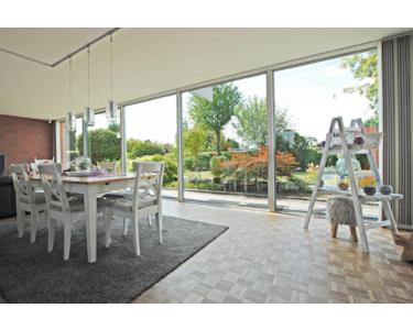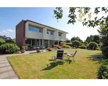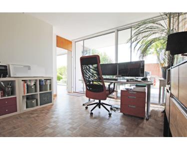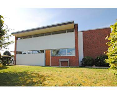 Wir bieten hier ein Einfamilienhaus in ruhiger Lage mit wunderschönem Garten an, entworfen vom Architekten Richard Neutra. Diese top-sanierte Immobilie befindet sich in einem verkehrsberuhigten und idyllischen Wohngebiet. Sie wurde 1964 in massiver Bauweise architektonisch anspruchsvoll errichtet und überzeugt durch einen durchdachten und großzügigen Schnitt sowie minimalistischer Eleganz. Neutra plante Flachdach-Bungalows mehrheitlich mit nur einem, wenige mit zwei Geschossen. Durch ihre deckenhohe, großzügige Verglasung ist eine unmittelbare Eingliederung in die Natur gegeben. Der Wohnbereich (ca. 42m²) empfängt mit einem wunderbaren Blick auf die sonnenverwöhnte Terrasse und in den Garten. Im Erdgeschoss (ca. 84m²) liegen benachbart die Küche, ein Arbeitszimmer und im Eingangsbereich ein Gäste-WC. Über eine Treppe wird das Obergeschoss (ca. 78m²) mit vier Zimmern und zwei Bädern (Vollbad und Duschbad) erreicht. Die zwei hinteren Räume sind derzeit partiell durch eine Wandöffnung verbunden und in einen Schlaf- und einen Arbeitsbereich aufgeteilt. Der Keller beherbergt die Hauswirtschaft, Vorräte, einen Heizungskeller sowie eine geräumige Werkstatt. Die gemauerte Garage liegt benachbart zum Grundstück; die Auffahrt bietet weitere Stellplätze. Von 2012 bis 2014 wurde das Einfamilienhaus äußerst aufwändig und in Abstimmung mit dem Denkmalschutz saniert: Sämtliche Fenster und Außentüren; eine neue Gasheizung mit Brennwerttherme speist die Umluftheizung; Solarthermie; ein wasserführender Kaminofen; Erneuerung der gesamten Elektrik; Erneuerung und Dämmung des Daches; Innendämmung sämtlicher Außenwände, Außendämmung des Kellers; Sanierung und Hydrophobierung der Ziegel; Erneuerung der Wasserleitungen; Modernisierung der Küche, der Bäder und des Gäste-WCs. Erneuerung aller Bodenbeläge: Eichenparkett und Fliesen im EG sowie Korkparkett im OG. Außenanlagen: Gartengestaltung und Pflasterung von Terrasse und Zuwegungen. Der Innenausbau ist stilgerecht umgesetzt worden, so dass die Elemente dem Original entsprechen. Aufbereitet wurden die Türen und Türgriffe, Türrahmen sowie die Treppen.