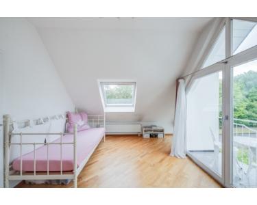 Sollte ein drittes Kinderzimmer benötigt werden, eignet sich das ausgebaute Dachgeschoss hervorragend als Schlafbereich für die Eltern – dank eines zusätzlichen Badezimmers – oder auch als Studio. Auch in diesem Stockwerk steht ein weiterer Abstellraum zur Verfügung.