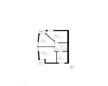 Im Obergeschoss befinden sich drei helle Schlafzimmer, die sich ideal als zwei Kinderzimmer und ein Elternschlafzimmer nutzen lassen. Auf dieser Etage befindet sich außerdem ein Tageslichtbad mit zwei Waschbecken sowie einer Duschwanne. Zwei zusätzliche Balkone sind vom Elternschlafzimmer und vom zweiten Kinderzimmer aus zugänglich.