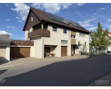 Vorhanden ist eine sehr große Terrasse auf der Doppelgarage, ein großer Hobbyraum, ein Gewölbekeller und eine Photovoltaik-Anlage auf dem Dach.