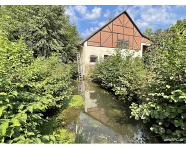Baujahr vermutlich um 1800. Im Erdgeschoss eine ausgebaute Wohnung sowie ein Büro, Ober- und Dachgeschoss leerstehend. Erheblicher Sanierungs- und Instandsetzungsbedarf. Perspektivisch bietet sich die Möglichkeit, die Wasserkraftanlage zur Eigenstromerzeugung zu reaktivieren (vorbehaltlich Genehmigung).