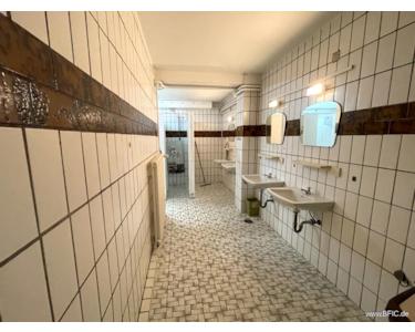Getrennte Dusch- und WC-Bereiche für Damen und Herren. Baujahr unbekannt, Ausstattung und Sanitärelemente nicht mehr zeitgemäß. Öl-Niedertemperaturheizung aus dem Jahr 1998.