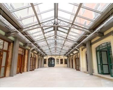 Schon beim Betreten eröffnet sich ein großzügiger, lichtdurchfluteter Gastraum mit verglaster Überdachung – ein einladender Mittelpunkt, der sich ideal für den täglichen Restaurantbetrieb eignet. Von hier aus führen die Wege zu mehreren Veranstaltungsräumen auf beiden Seiten, die sich flexibel für private Feiern oder geschäftliche Events nutzen lassen.