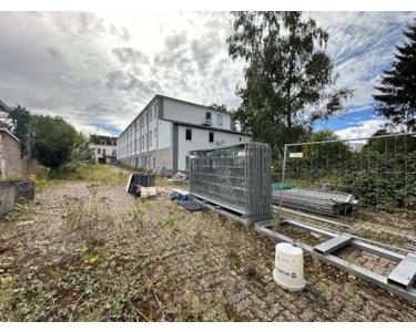 Hof: Einfahrtsbereich (breit genug für jegliche Art von Fahrzeugen), Parkplatzanlage/Stellplätze neben/hinter Fabrikgebäude, Garagengebäude mit 3 Toren