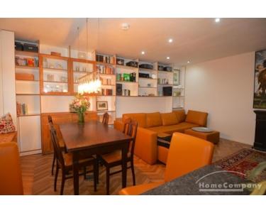 Diese stilvoll eingerichtete 2-Zimmer-Maisonette bietet ruhiges Wohnen im Hinterhof, mitten im lebendigen Szenekiez. Auf der oberen Etage befinden sich ein Schlafzimmer, ein frisch renoviertes Badezimmer mit Dusche und Badewanne, ein Arbeitsbereich, der wie ein dritter Raum genutzt werden kann, sowie ein begehbarer Kleiderschrank. Im unteren Bereich lädt der offene Wohnraum mit moderner Küche, ausgestattet mit einer Induktionsplatte mit Grillfunktion und einem Dampfgar-Backofen, zum Verweilen ein. Der angrenzende Balkon mit Markise bietet eine gemütliche Außenfläche. Die Wohnung besticht zudem durch Highlights wie ein Heimkino mit Beamer und Leinwand und wird voll möbliert vermietet – inklusive Bettwäsche, Handtücher und Geschirr. Trotz zentraler Lage ist die Wohnung angenehm ruhig und ideal angebunden. Perfekt für alle, die modernes Design und urbanes Leben schätzen!