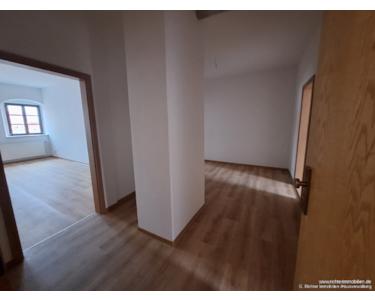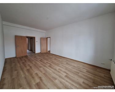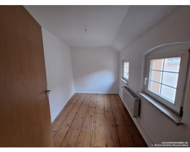6-Zimmer Etagenwohnung direkt auf dem Obermarkt: drei Zimmer sind vom vorderen Flur aus erreichbar. Drei kleinere Räume befinden sich im Hinterhaus, erreichbar über einen weiteren Flur hinter der Küche. In den vorderen Räumen wurde neuer Boden verlegt, die Wohnung wurde umfassend renoviert.