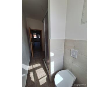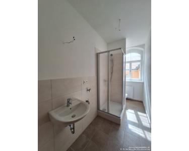 Das frisch renovierte Tageslichtbad ist mit einer Dusche ausgestattet.