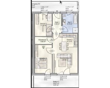 - Mietzins: 12,00 € pro m² + 60,00 € für den TG-Stellplatz
