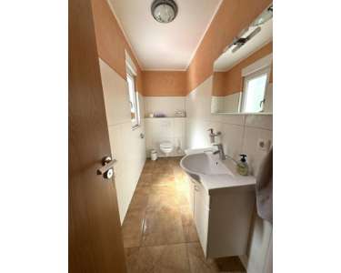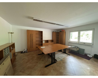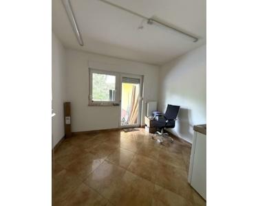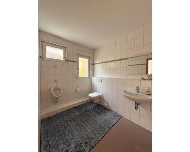 Im benachbarten Gebäude befindet sich eine weitere Einheit mit einem separaten WC, das mit einem Waschbecken und einem Pissoir ausgestattet ist. Geht man weiter geradeaus, gelangt man in einen großzügigen Raum, der flexibel als Büro, Aufenthalts- oder Pausenraum genutzt werden kann. Eine eingebaute kleine Küche schafft hier zusätzliche Aufenthaltsqualität und bietet sich ideal für Personal- oder Besprechungszwecke an.