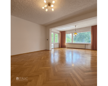 Die Erdgeschosswohnung erstreckt sich über ca. 90 m² und befindet sich in einem älteren, aber sehr gepflegten Zustand. Besonders hervorzuheben ist das großzügige Wohnzimmer, das mit einem klassischen Parkettboden ausgestattet ist und den direkten Zugang zur Terrasse und in den Garten bietet. Badezimmer und Flur sind mit Fliesen versehen, was die Räume pflegeleicht und funktional macht. Ein Badezimmer sowie ein separate Dusche runden das Raumangebot dieser Einheit ab und machen sie zu einer attraktiven Wohnung, die durch den direkten Gartenzugang besonders familienfreundlich wirkt.