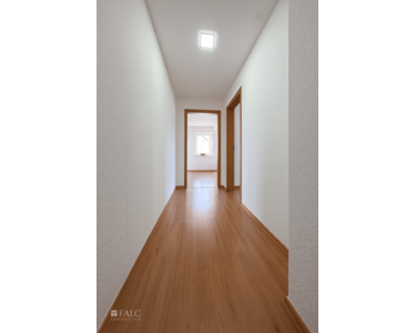 Die Obergeschosswohnung umfasst rund 80 m² und wurde 1996 umfassend modernisiert. Neben einem neu gestalteten Badezimmer erhielt die Wohnung pflegeleichte Fliesen- und Parkettböden, die für eine helle und moderne Wohnatmosphäre sorgen. 2017 wurde zudem der Balkon erneuert, der vom Wohnzimmer und Schlafzimmer aus begehbar ist und einen angenehmen Blick in den Garten eröffnet. Diese Wohnung bietet somit zeitgemäßen Komfort in einem gepflegten Umfeld.