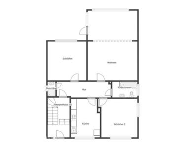 Das Dachgeschoss, das 1978 ausgebaut wurde, verfügt über rund 57 m² Wohnfläche. Hier stehen drei Zimmer, eine Küche sowie ein Badezimmer zur Verfügung. Alle Räume sind vom Flur aus begehbar, wodurch auch diese Wohnung eine angenehme Wohnstruktur erhält. Der besondere Charme dieser Einheit entsteht durch die gemütlichen Dachschrägen, die den Räumen eine behagliche Atmosphäre verleihen.