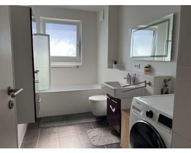 Zwei große, gut geschnittene Schlafzimmer bieten sich für Eltern und Kind oder ein HomeOffice an. Das geräumige Tageslichtbad bietet neben einer Badewanne, WC und modernem Waschtisch auch Anschlüsse für Waschmaschine und Kondenstrockner. Die großformatigen Marazzi-Fliesen stehen für den gehobenen Anspruch.