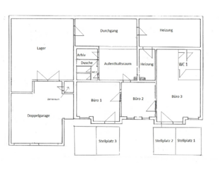 Die Fläche befindet sich im Erdgeschoss eines Wohn/Geschäftshauses und wird mit einer Gaszentralheizung beheizt. Sie besteht aus einer Büro- oder Praxisfläche sowie einem Lager. Ein DSL-Anschluss ist mit bis zu 1000 Mbit/s möglich. Die Räume befinden sich im Rohbauzustand und werden vom Eigentümer nach Mieterwunsch fertiggestellt.