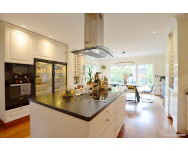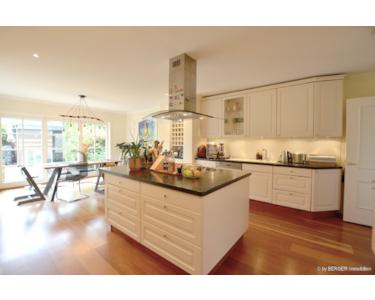 - hochwertige Einbauküche mit Kochinsel, Weinkühlschrank und Anbau