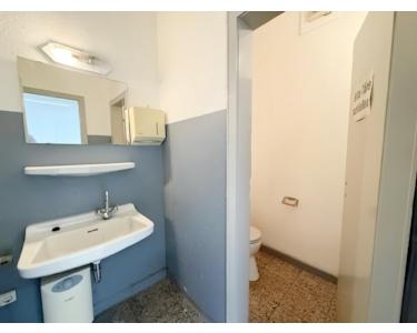 Zudem verfügt das Objekt über ein separates WC sowie einen kleinen Sanitärbereich mit Waschbecken und Spiegel, was die tägliche Nutzung erleichtert. Im rückwärtigen Bereich befindet sich ein Zugang zum Innenhof, der zugleich als Anlieferzone oder Lagerfläche genutzt werden kann.