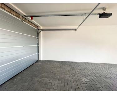 Zum Haus gehört eine massive Garage mit weißem, elektrisch betriebenem Sektionaltor. Optional kann auf dem Grundstück ein Stellplatz für Wohnmobil oder Wohnwagen geschaffen werden.