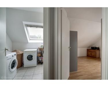 Praktisch im Dachgeschoss gelegen – mit Anschlüssen für Waschmaschine und Trockner, direkt dort, wo die meiste Wäsche anfällt.
