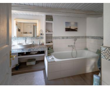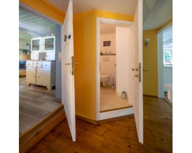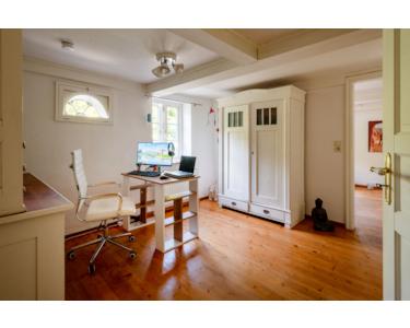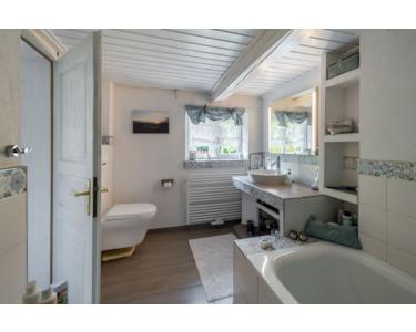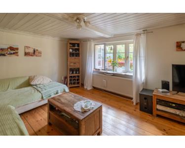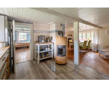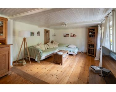 Vermutlich um 1875 wurde das Reetdachhaus auf dem 1.478 m² großen und komplett eingezäunten Grundstück erbaut. Aktuell bietet das Haus 122 m² Wohnfläche (inkl. HWR) im Erdgeschoss, wobei der großzügige Dachboden noch zusätzlich als Ausbaureserve mit ca. 75 m² zur Verfügung steht. Vom Flur im EG geht es zum Bad (neu in 2019) mit Badewanne, ebenerdiger Dusche und Fußbodenheizung sowie zum großen Wohn-Essbereich mit offener Küche sowie einer gemütlichen Besonderheit: Der 2020 eingebaute Kaminofen ist drehbar, so dass man das Kaminfeuer aus jeder Perspektive, von der Küche wie vom Wohnraum gleichermaßen, genießen kann. An die Küche grenzt ein weiterer Raum an (z.B. Schlafzimmer oder Arbeitszimmer), und eine Türe führt von der Küche aus in einen großen Flur, von dem alle weiteren Räume im EG erreicht werden: Gäste-WC, Hauswirtschaftsraum (inkl. Heizung) sowie 3 weitere Zimmer (Schlafen, Kinder, Gäste, Arbeiten...). Wärme und Warmwasser kommen über Fernwärme. Zu beachten sind die für solche Häuser typischen Deckenhöhen. Der Außenbereich punktet mit 2 Außenstellplätzen, einem Carport, einem Nebengebäude und Abstellraum sowie einem separaten Saunahaus. Hier lässt es sich im parkähnlich-angelegten und komplett eingezäunten Garten (hundegerecht) bestens relaxen. Das Reetdach wurde zwischen 2014 und 2019 in 2 Abschnitten komplett erneuert. Denkmalschutz gibt es nicht, und Glasfaser liegt bereits in der Straße, kann also bei Bedarf angeschlossen werden.