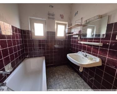 Das Badezimmer im Erdgeschoss ist ursprünglich mit Badewanne, Waschbecken sowie Fliesen gehalten. Im Dachgeschoss steht ein weiteres Bad mit Dusche, Waschbecken und WC zur Verfügung. Das Grundstück bietet Ihnen viel Platz zum Entspannen und Relaxen. Der Garten kann nach individueller Gestaltung zu einem grünen Rückzugsort werden; hier können Sie sich vom Stress des Alltags erholen. Das Haus ist mit einer Erdgaszentralheizung ausgestattet.