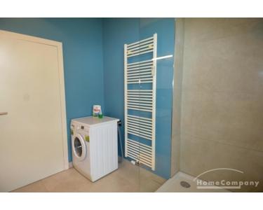 Das Duschbad ist komplett gefliest, hier befindet sich die Waschmaschine.