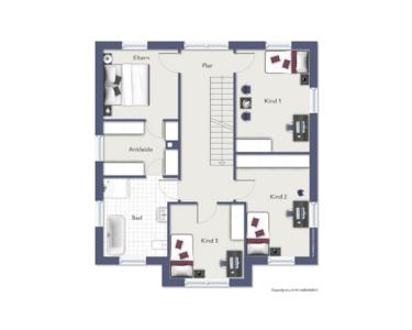 Im Obergeschoss finden Sie Raum für jedes Familienmitglied: Drei Kinderzimmer bieten Platz für Spiel, Rückzug und Kreativität. Das Elternschlafzimmer begeistert mit eigener Ankleide und einem stilvollen Bad ein privater Rückzugsort zum Wohlfühlen.