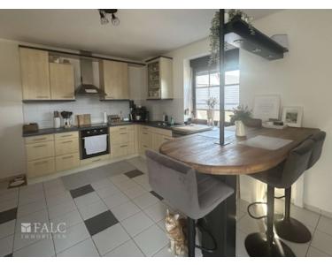 Die geschmackvolle Küche verfügt über eine Einbauküche und einen Tresen zum gemeinsamen Sitzen und Essen. Hier nimmt man seine Mahlzeiten gerne ein. Die Küche verfügt über ein bodentiefes Fenster. Den Balkon können Sie direkt von der Küche erreichen.
