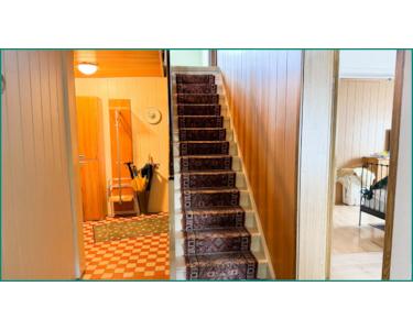 Blick in das zum Teil offene Treppenhaus im Obergeschoss