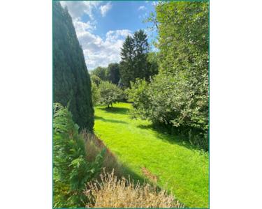 Linke Hausseite mit schönem Strauch- und Baumbestand