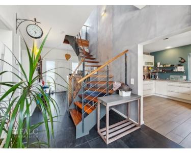 Über eine Echtholztreppe (Amazakoue-Holz) gelangt man ins Obergeschoss der Immobilie. Hier befinden sich drei Zimmer, die ideal als Schlafzimmer, Kinderzimmer oder Arbeitszimmer genutzt werden können. Das Badezimmer ist mit einer Badewanne und einer ebenerdigen Regendusche ausgestattet und ermöglicht somit entspannende Wellness-Momente.