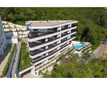 Luxuriöse 2-Zimmer-Wohnung in einem neuen Gebäude mit Swimmingpool, Aufzug und Tiefgarage in ruhiger Lage nahe dem Meer und dem Zentrum von Opatija.