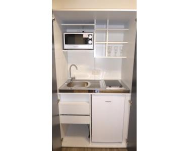 Im Erdgeschoss ist ein großer Raum mit einem kleinen abgeteilten Lager, einer integrierten Pantryküche sowie einem eingebauten Garderobenschrank, danach folgt ein Flur mit Durchgang zum WC.