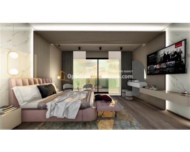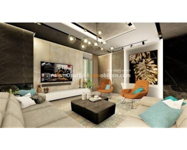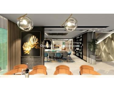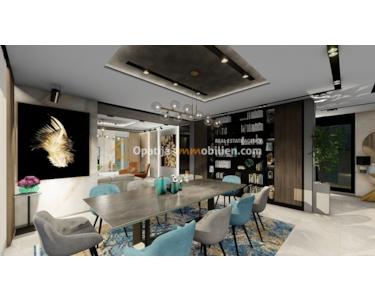Das Erdgeschoss ist als Wohnzimmer mit Kamin, Esszimmer und offener Küche mit einem Überlaufpool von 43 m2 und einer Terrasse konzipiert, die die beiden Einheiten verbindet. Küchengeräte und andere Möbel sind von höchster Qualität.