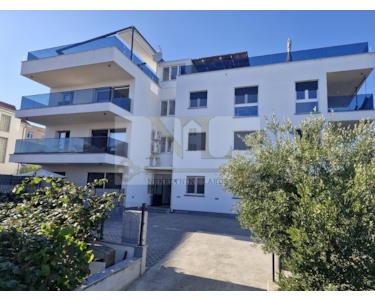Wir verkaufen die Wohnung S3 im ersten Stock eines Neubaus in Okrug Gornji, in bester Lage, nur 100 Meter vom Meer und Strand entfernt.